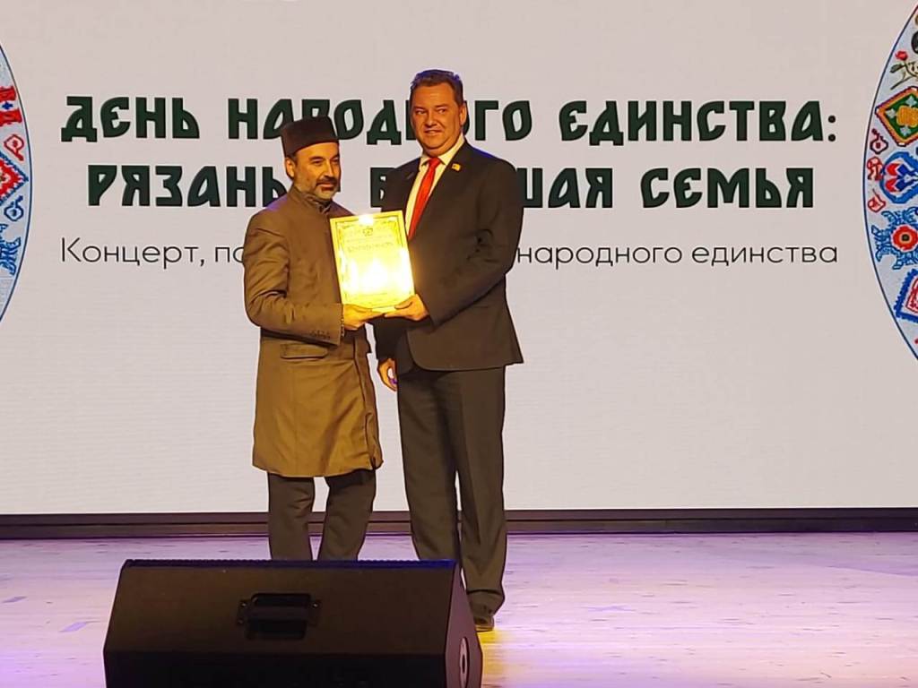 В среду,  5 ноября 2025 года, в Рязанском Дворце культуры и искусства, в рамках празднования государственного праздника Дня народного единства прошло мероприятие, посвященное Дню народного единства «Рязань – большая семья». На концерт были приглашены руководители и активисты национальных объединений и конфессий Рязани, члены Совета по гармонизации межнациональных и межконфессиональных отношений города Рязани и области, среди которых главный имам-мухтасиб Рязанской области Рашид-хазрат Бултачеев. Ему было вручено благодарственное письмо Экспертного совета при правительстве региона. За активную работу по укреплению межнационального и межконфессионального мира и согласия в Рязани. Благодарность вручил председатель Экспертного совета при правительстве Рязанской области – Максим Юрьевич Стрельцов.