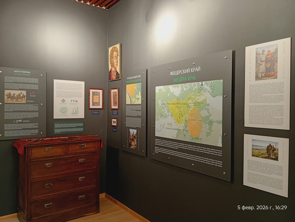 В четверг, 5 февраля 2026 года, в Касимове, в этно-кафе «Татарская сказка» состоялось открытие нового музейно-выставочного пространства «Касимовская сокровищница» /«Касыйм хәзинәсе»/. Эта выставка рассказывает историю субэтноса касимовских татар: их степных предков, появление в Мещере, роль в становлении Московского царства, активную промышленную и торговую деятельность татарских купцов Касимова в Российской империи, ярких представителей народа ХХ века, а также возрождение общины после советского периода. Экспозиция подготовлена в рамках проекта «Касимовские татары: наследие поколений» и реализуется при поддержке Президентского фонда культурных инициатив.