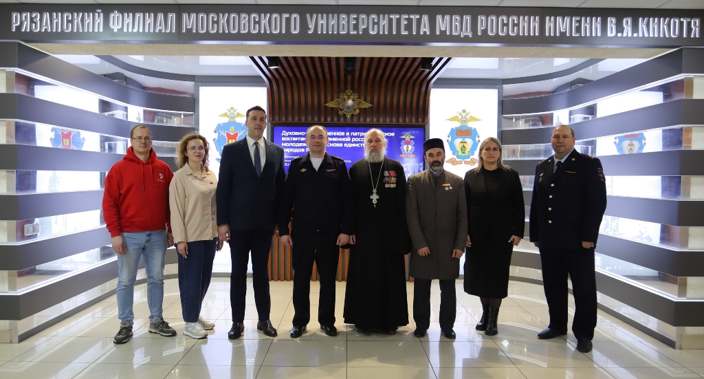 В среду,  25 марта 2026 года, в Рязанском филиале Московского ордена Почета университета МВД России имени В.Я. Кикотя состоялась научно-практическая конференция «Духовно-нравственное и патриотическое воспитание современной российской молодежи как основа единства народов России». В рамках научно-представительского мероприятия были обсуждены вопросы общетеоретические и прикладные вопросы духовно-нравственного и патриотического воспитания, формирования гражданственности молодого поколения России, традиционных российских духовно-нравственных ценностей в контексте Года единства народов России. В работе конференции приняли участие представители традиционных конфессий: протоиерей Игорь Миронов и главный имам-мухтасиб Рязанской области Рашид-хазрат Бултачеев